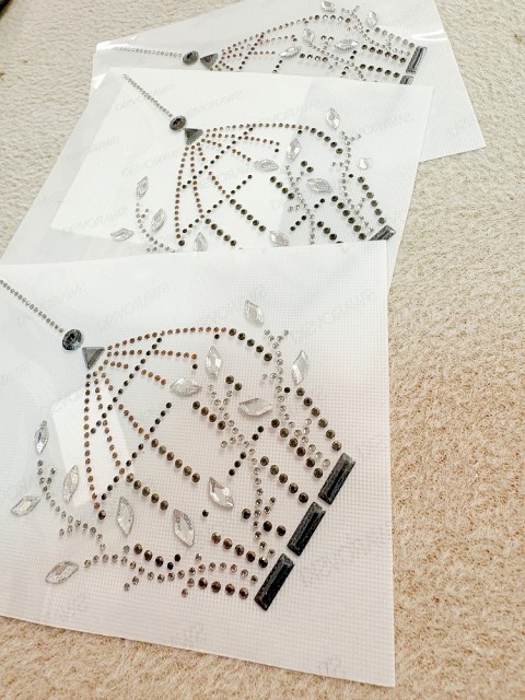 Transfer Crystal Hot Fix, bruk gjerne strykejern til å feste, på tøy som tåler høy varme, bruk mellomlegg.