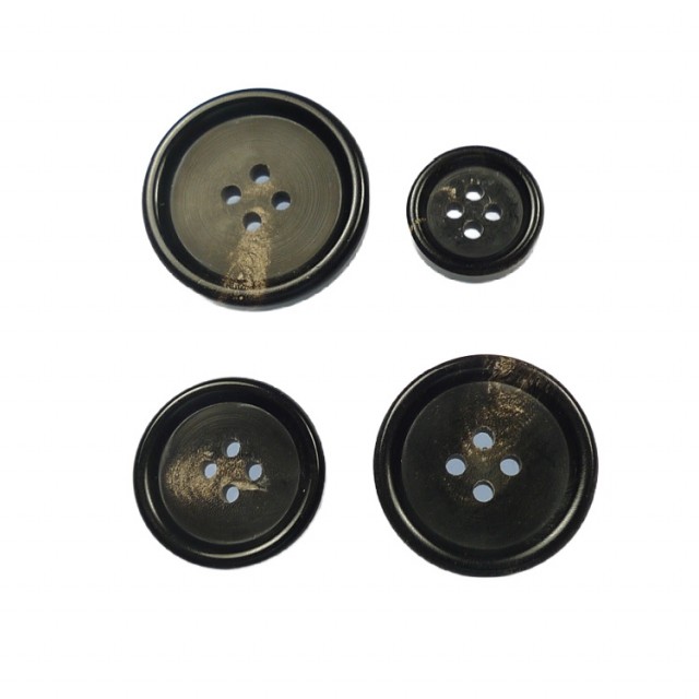 Fine mørke hornknapper, 4 hull, 23mm.