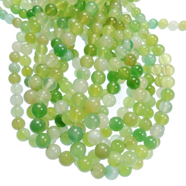 Gulgrønne agatperler, fresh grønn/hvit variant, 8mm