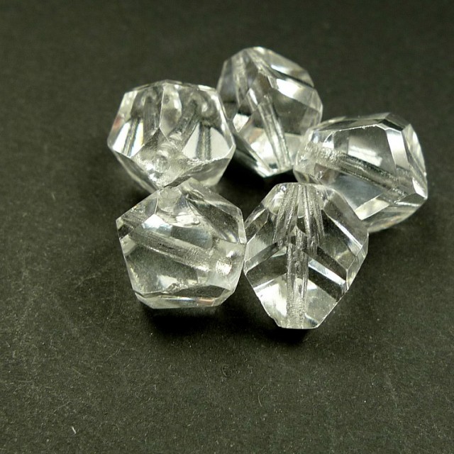 Disse perlene har en noe uavnlig fasett, de er 14mm lange. Klare. Du kjøper 5stk.