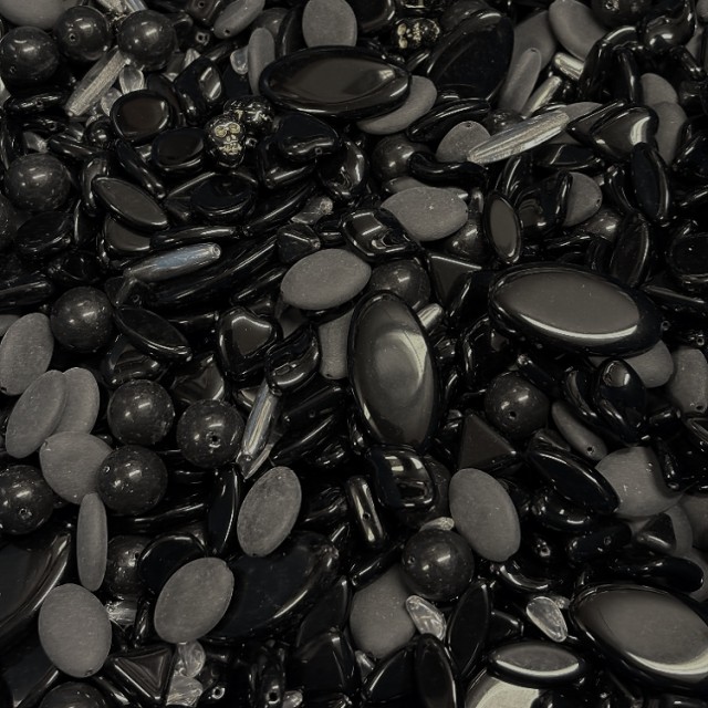 Pressede glassperler, form og farge SORTE MIKS,  200g.