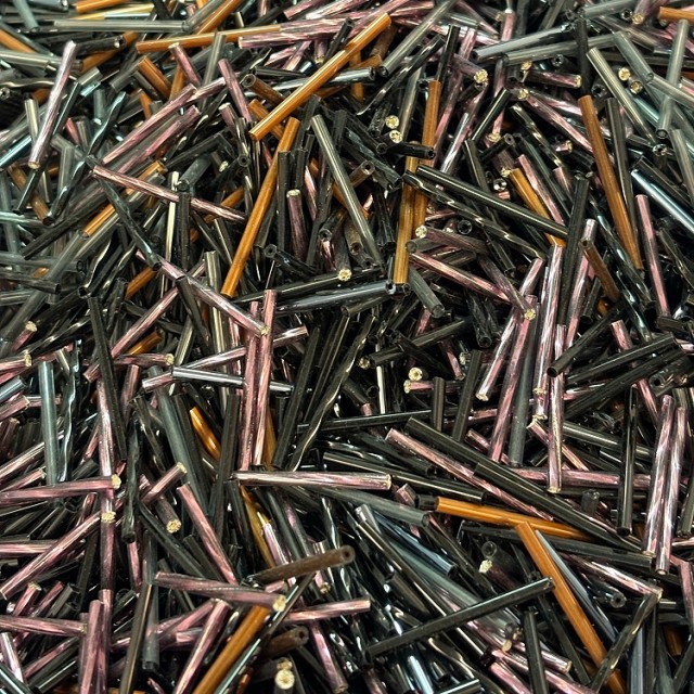 Staveperler, 30-35mm. Både rette og vridde, mørke farger. FARGEMIKS. Prisen er for 100g