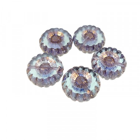 Tablecut er en arbeidskrevende teknikk der perlene poleres slik at kanten beholder en matt overflate, som vanligvis er en spesialfinish farge, og midten forblir blank ↓