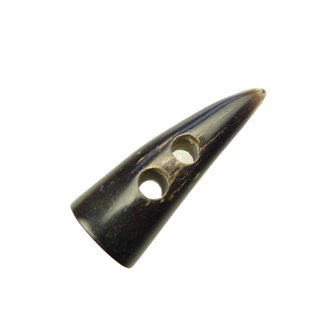 Knapper, hornduffel, ca.lengde 5-6cm. Knappen er sort med grå/beige.