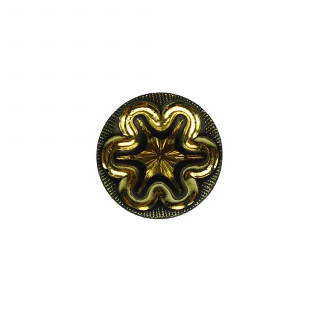 Små sorte glassknapper med gull, fine til cardigan, 12mm.