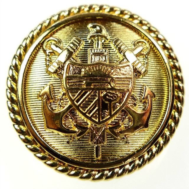 Fin kraftig gullknapp med anker, diameter 21mm.