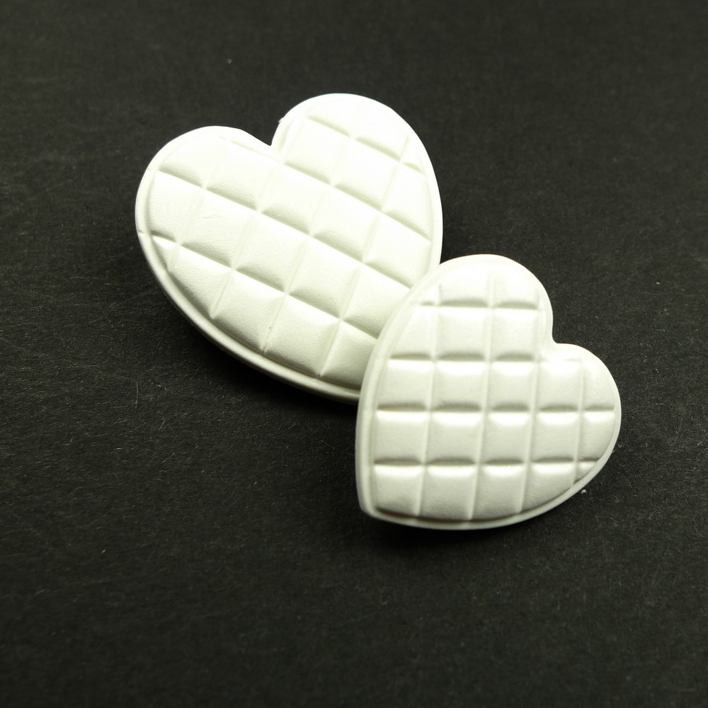 Hvite "vatterte" hjerteknapper, høye, 28mm.