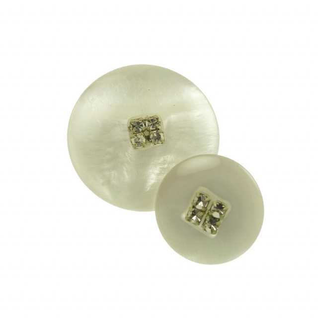 Knapper lys beige, perlemoreffekt, med 4 små strasstener (støpt i knappen), 22mm