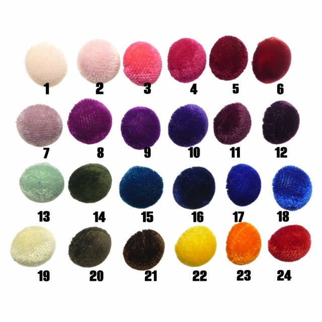 Størrelsen er 14mm i diameter og det finnes 25 farger å velge mellom. Lages også i sort som har nummer 25 men er ikke med på bildet. Pris for 10 stk.