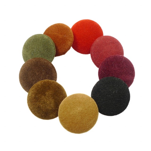 Fine og solide knapper i stoff som imiterer semsket skinn. 10 stk.