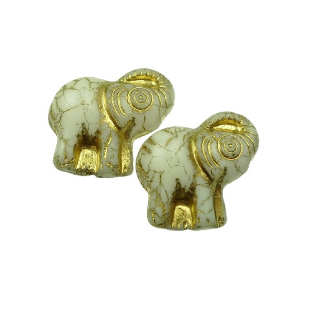 Glassperler, elefanter, 20x21 mm, hvitt med gull, 2 stk