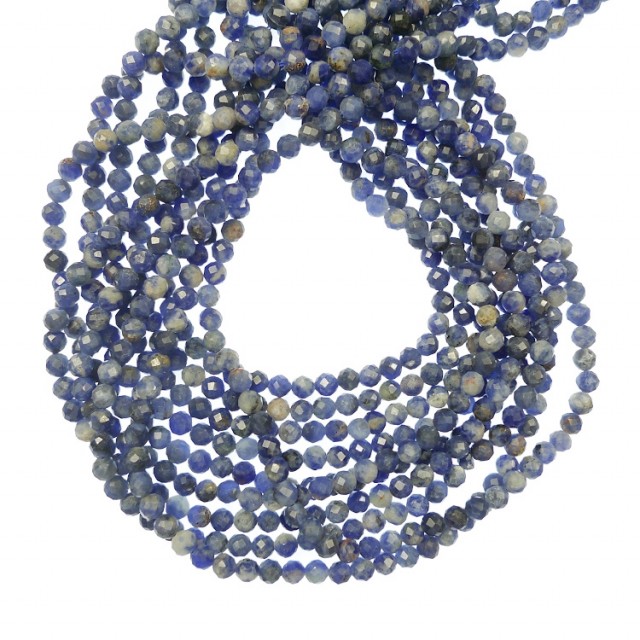 Steinperler, sodalitt, runde, med fasett, 4mm.