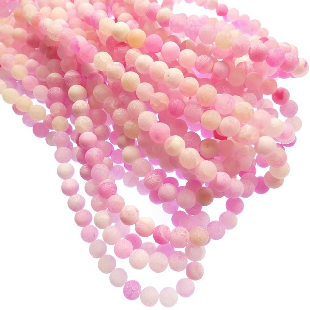 Steinperler, rosa agat, matte, 8mm. OBS lysere enn den rosa varianten vi hadde tidligere.