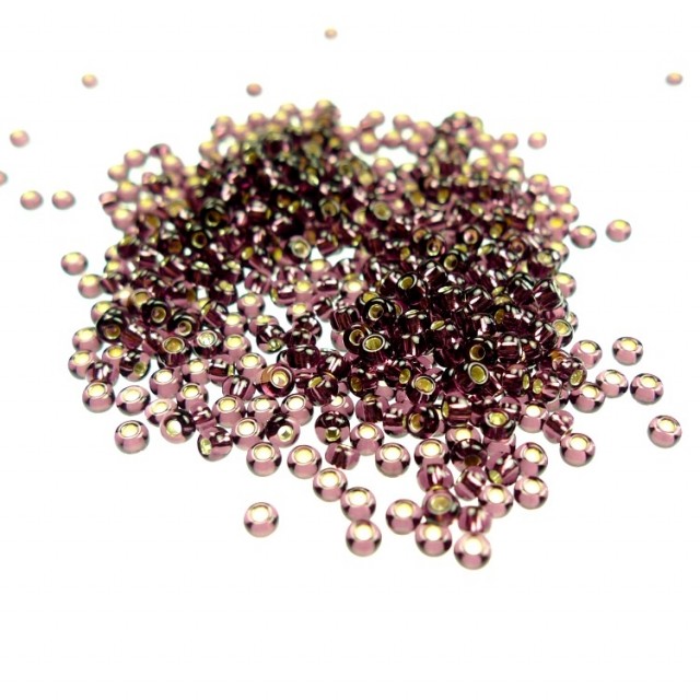 Småperler 9/0 SL betyr perler med sølvkjerne, med litt mer glittrende effekt.