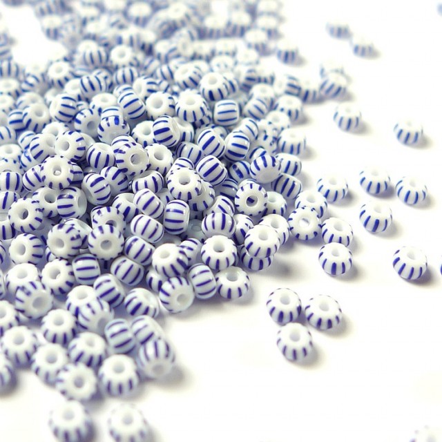 Rocailles 9/0 striper, måler ca.2.6mm (2.4 til 2.8mm), hull 0.8mm, ca 600 stk per 10 gram.