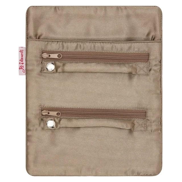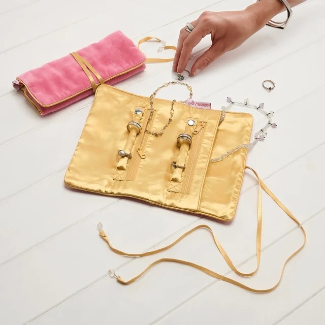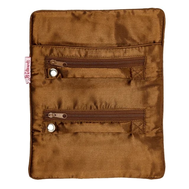 Luksuriøs, myk fløyelsetui å ha smykker i, kjekt å oppbevare dine smykkefavoritter både hjemme og på reiser. Foret med silkestoff, har 3 lommer og 3 ringpinner med trykknapp.