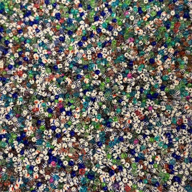Rocailles 9/0 effekt og striper, måler ca.2.6mm (2.4 til 2.8mm), hull 0.8mm.