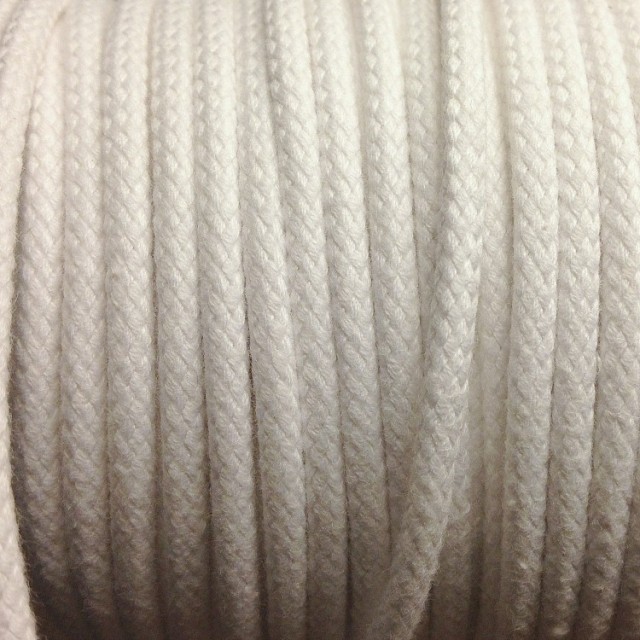 Kvalitetssnor, bomull, hvitt, 3mm tykk. Prisen er for 1 m.